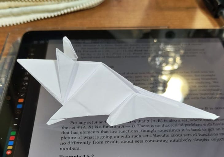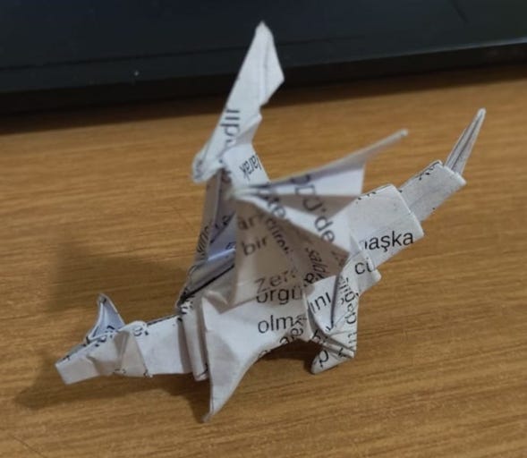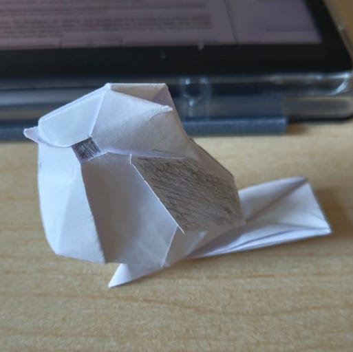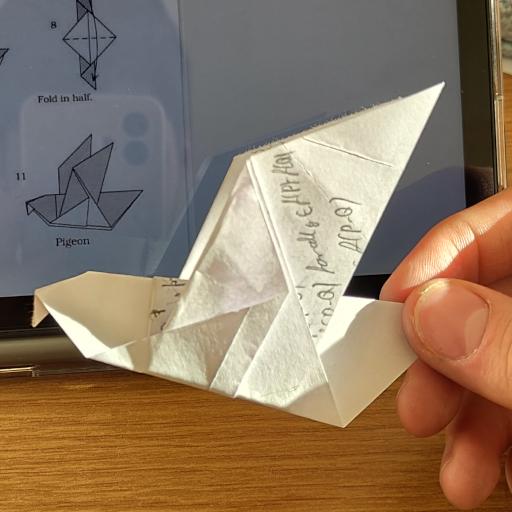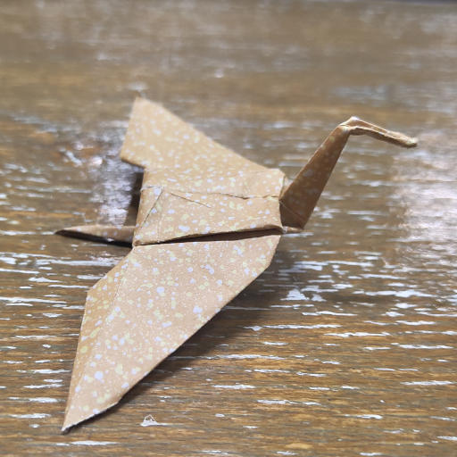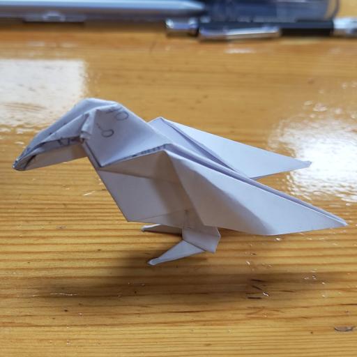 Commentary on the model: Apperantly this Crane variation is able to fly but I couldn't get it to. Maybe it's because I folded it too from too small of a paper.