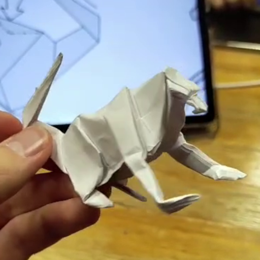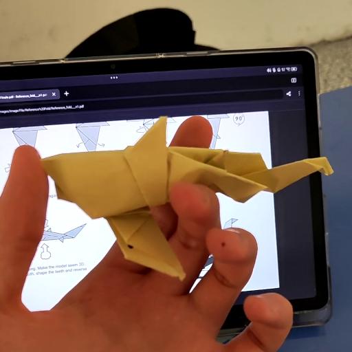 Commentary on the model: There's a particular pair of sink folds that make up the front teeth of the shark that I found very challenging to do. Since the only media that I had of the model was avideo I sent my friends this was the only "good" picture I could get of it.