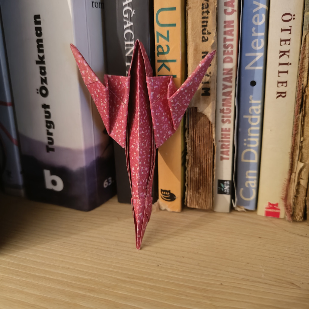 Commentary on the model: Apperantly this Crane variation is able to fly but I couldn't get it to. Maybe it's because I folded it too from too small of a paper.